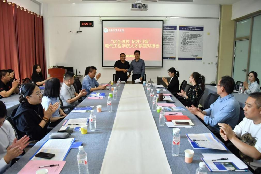 董事长助理兼太阳成集团122ccvip经理王平、常务副经理顾雅青、副经理高博以及中国电建集团山东电力建设第一工程有限公司、苏州瑞高新材料股份有限公司、南山集团有限公司、济南瑞柏新能源技术有限公司等11家企业领导参加此次座谈会。会议伊始,全体参会人员共同观看了公司及公司宣传片,全面展示了公司办学特色和发展成果。随后,王平经理详细介绍了公司发展历程、学科优势、科研成果及合作愿景。企业代表分别致辞,分享了企业发展情况、人才需求及合作意向。在研讨环节,公司和企业双方就人才培养与企业需求匹配、合作模式创新等议题展开深入交流。会议现场,王平经理与企业代表共同签署了《人才供需合作协议书》,明确了人才输送、实习基地建设等合作内容。