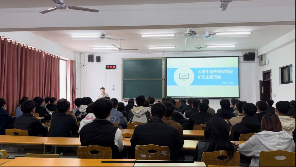 辅导员老师通过主题班会的形式,结合校园周边常见的消费纠纷案例,如网络购物诈骗、校外餐饮卫生问题、培训课程退费难等,深入浅出地向同学们讲解了消费者的基本权利、维权途径以及注意事项。辅导员老师通过播放真实的维权案例视频,让同学们直观地感受到了消费维权的重要性和紧迫性。
